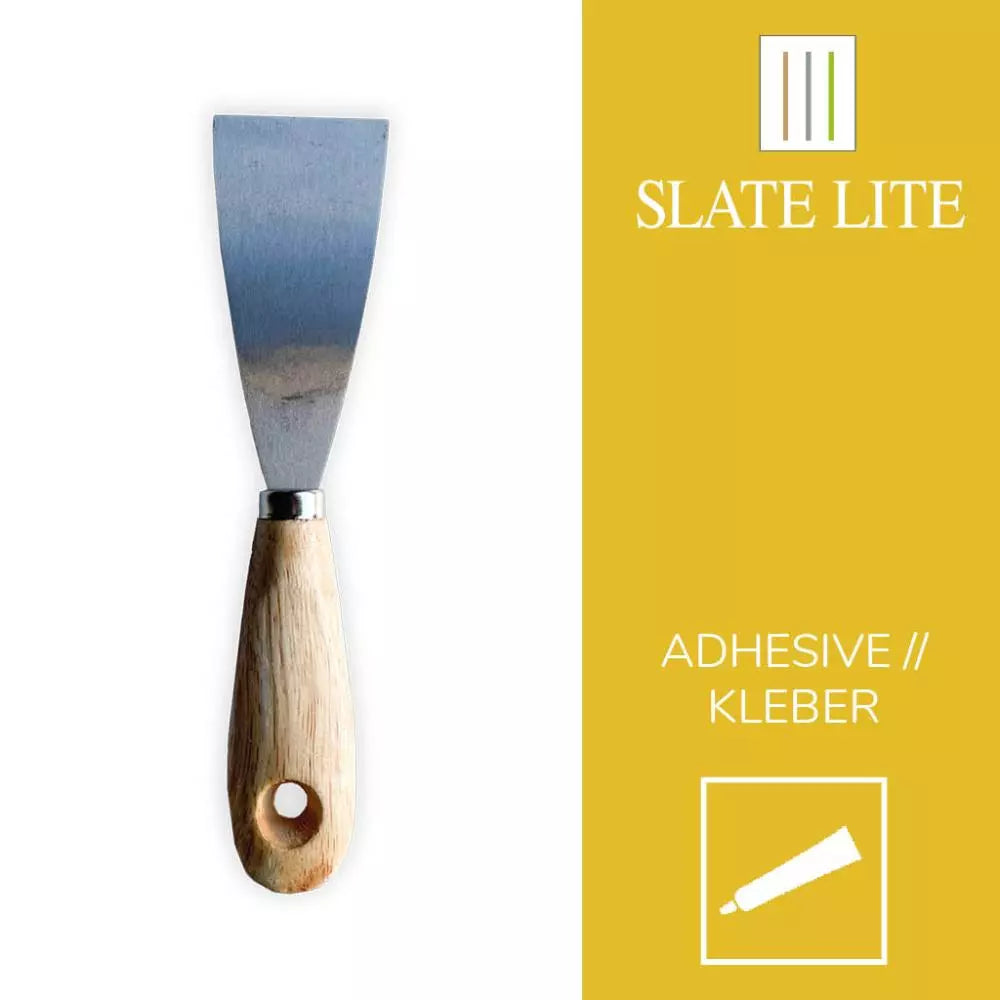 Der Glattspachtel ist das ideale Werkzeug für die Aufbringung des Translucent Crystal Clear Klebers.