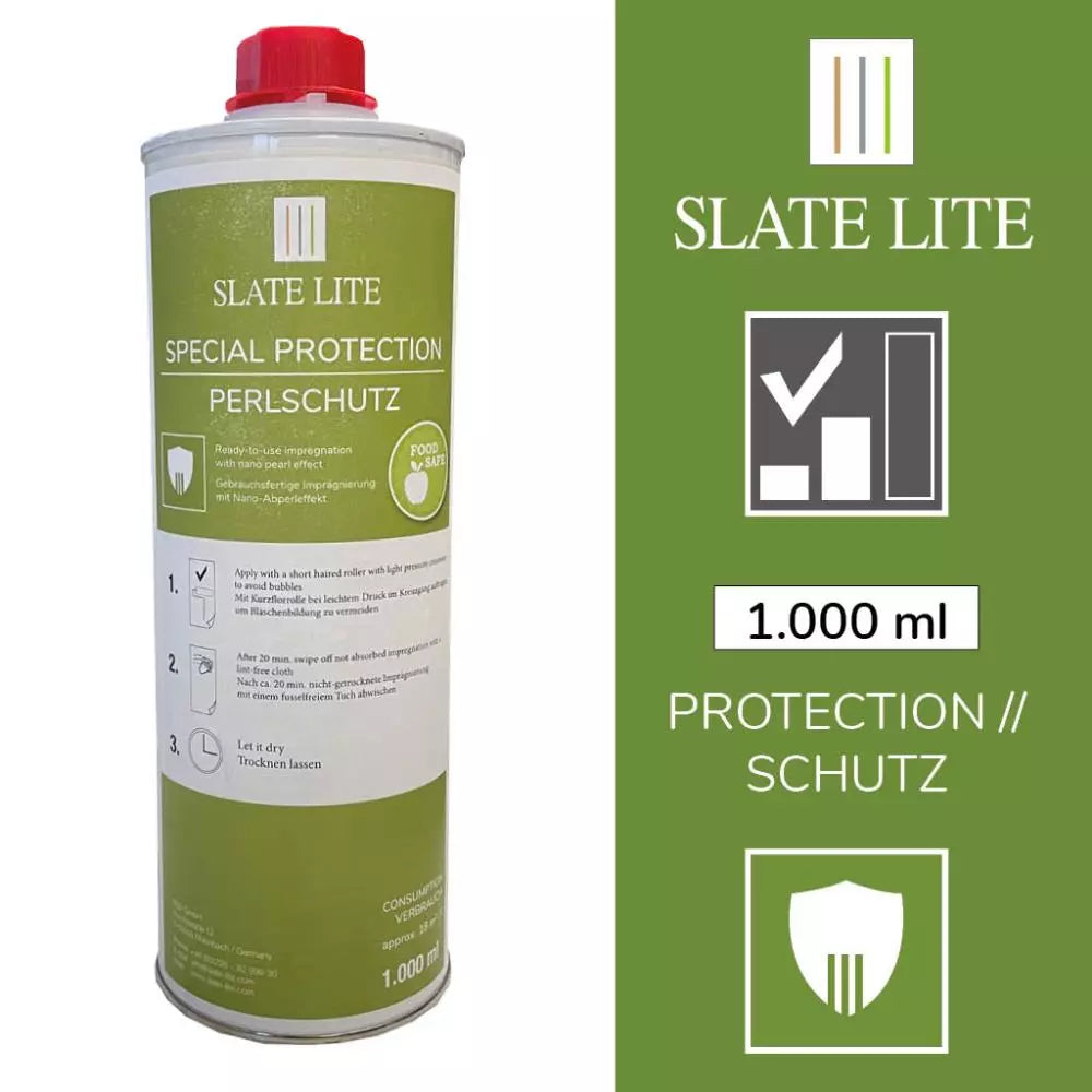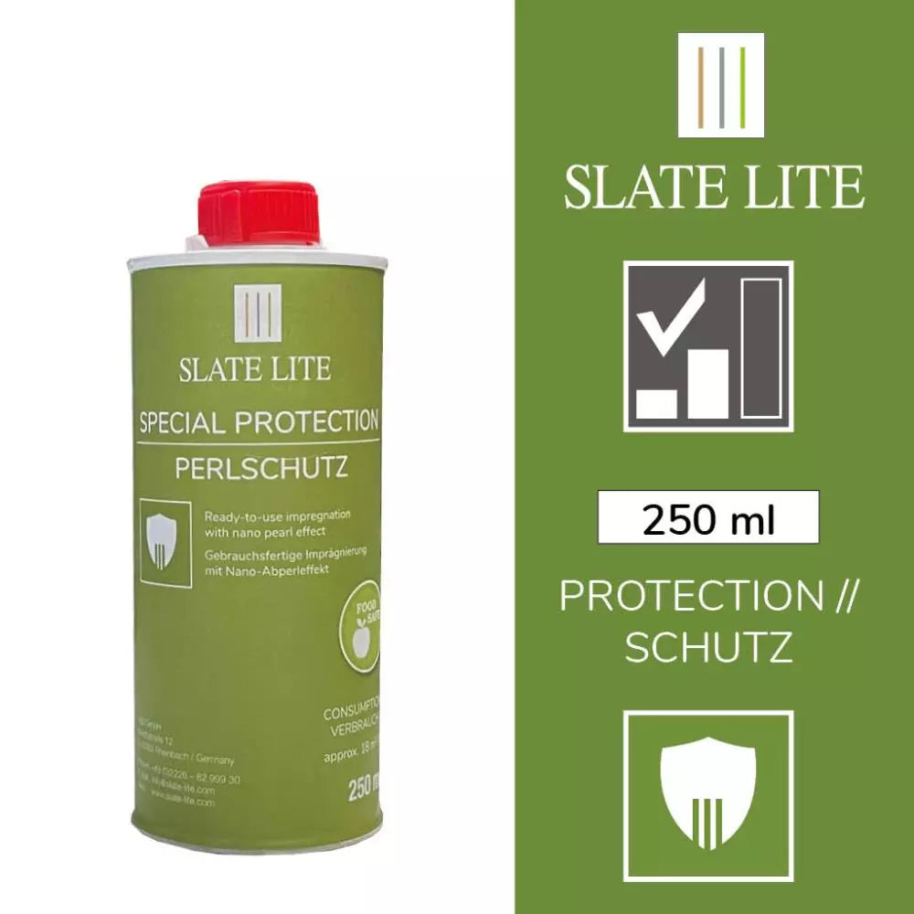 Slate-Lite Perlschutzist eine gebrauchsfertige, witterungsbeständige und vergilbungsfreie Imprägnierung auf Basis organischer Wirkstoffe. Durch die Kapillarkräfte des Steins wird der Perlschutz aufgenommen, ohne die Poren zu verschliessen. Daraus resultiert eine hohe Wirksamkeit.