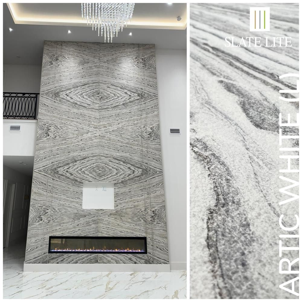Slate-Litewird aus Schichtgestein hergestellt. Farbunterschiede in den einzelnen Platten sowie Quarzadern, die sich durch den Stein ziehen, natürliche Risse oder leichte Absplitterungen können vorkommen. Dies ist kein Mangel, sondern vielmehr einMerkmal der echten Natursteinoberflächeund macht jedes Steinblatt vonSlate-Litezu einemabsoluten Unikat!