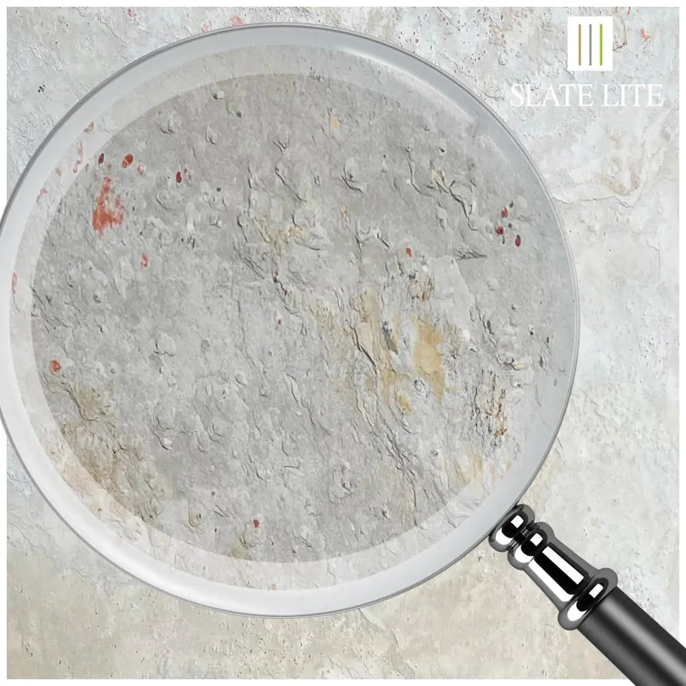 Slate-Litewird aus Schichtgestein hergestellt. Farbunterschiede in den einzelnen Platten sowie Quarzadern, die sich durch den Stein ziehen, natürliche Risse oder leichte Absplitterungen können vorkommen. Dies ist kein Mangel, sondern vielmehr einMerkmal der echten Natursteinoberflächeund macht jedes Steinblatt vonSlate-Litezu einemabsoluten Unikat!
