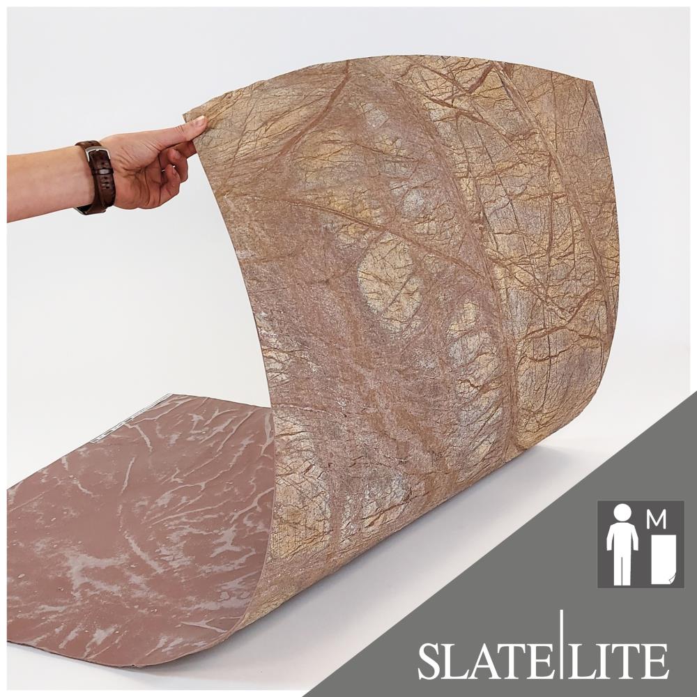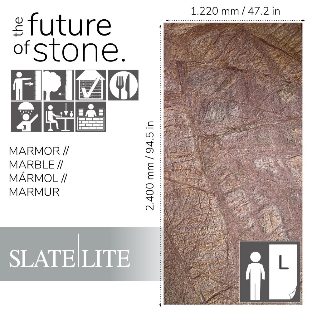 Slate-Litewird aus Schichtgestein hergestellt. Farbunterschiede in den einzelnen Platten sowie Quarzadern, die sich durch den Stein ziehen, natürliche Risse oder leichte Absplitterungen können vorkommen. Dies ist kein Mangel, sondern vielmehr einMerkmal der echten Natursteinoberflächeund macht jedes Steinblatt vonSlate-Litezu einemabsoluten Unikat!