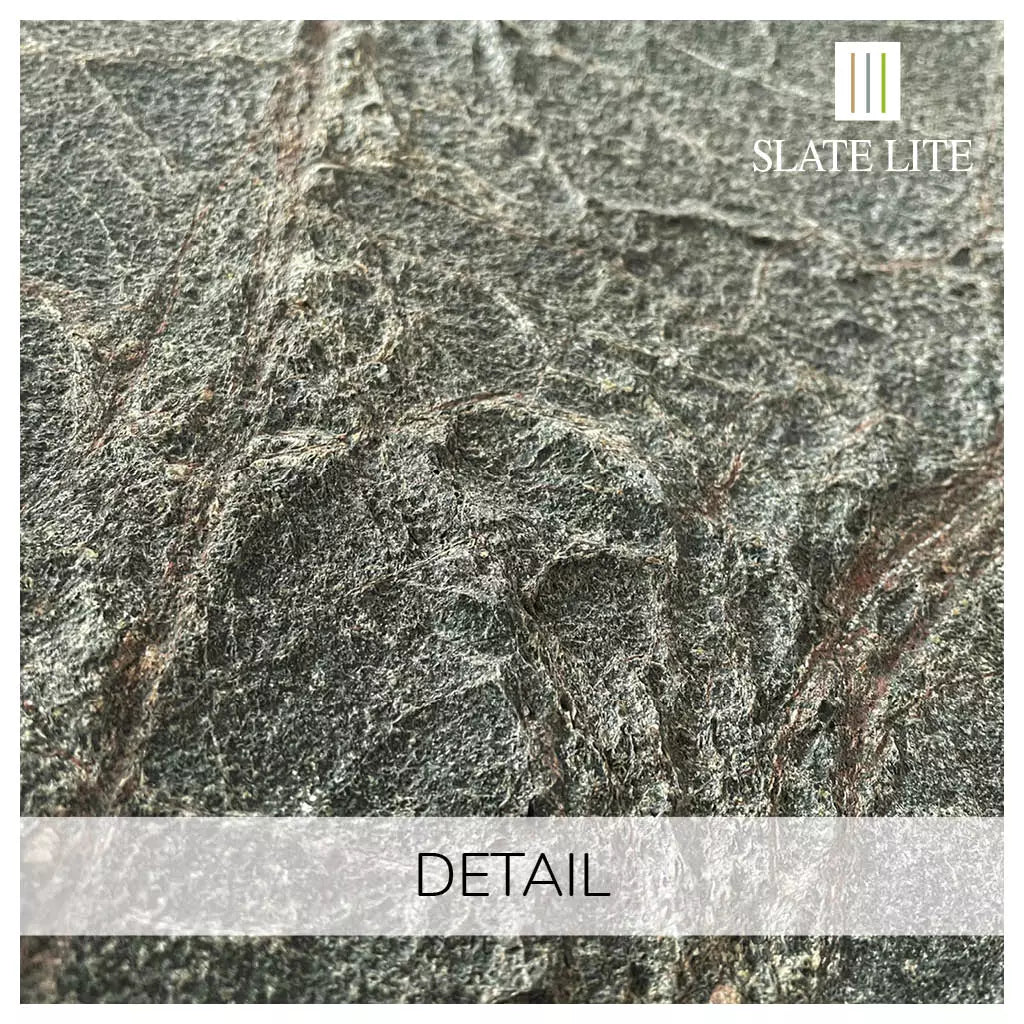 Slate-Litewird aus Schichtgestein hergestellt. Farbunterschiede in den einzelnen Platten sowie Quarzadern, die sich durch den Stein ziehen, natürliche Risse oder leichte Absplitterungen können vorkommen. Dies ist kein Mangel, sondern vielmehr einMerkmal der echten Natursteinoberflächeund macht jedes Steinblatt vonSlate-Litezu einemabsoluten Unikat!
