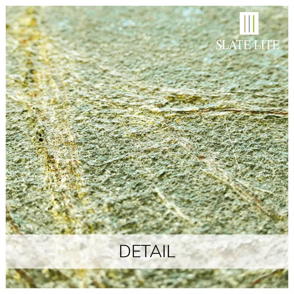 Slate-Litewird aus Schichtgestein hergestellt. Farbunterschiede in den einzelnen Platten sowie Quarzadern, die sich durch den Stein ziehen, natürliche Risse oder leichte Absplitterungen können vorkommen. Dies ist kein Mangel, sondern vielmehr einMerkmal der echten Natursteinoberflächeund macht jedes Steinblatt vonSlate-Litezu einemabsoluten Unikat!