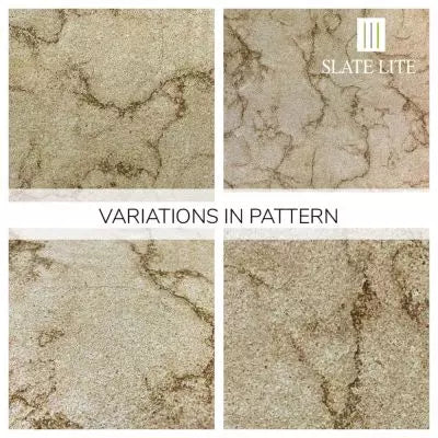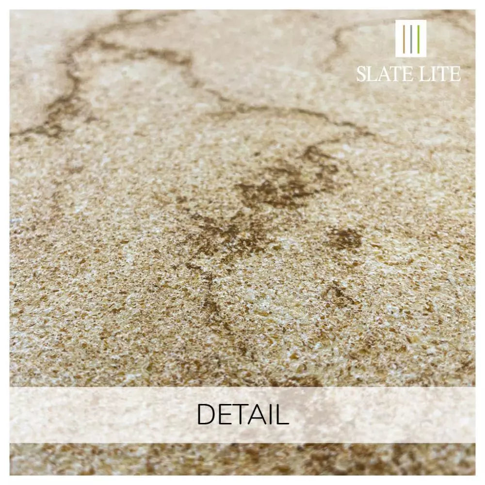 Slate-Litewird aus Schichtgestein hergestellt. Farbunterschiede in den einzelnen Platten sowie Quarzadern, die sich durch den Stein ziehen, natürliche Risse oder leichte Absplitterungen können vorkommen. Dies ist kein Mangel, sondern vielmehr einMerkmal der echten Natursteinoberflächeund macht jedes Steinblatt vonSlate-Litezu einemabsoluten Unikat!