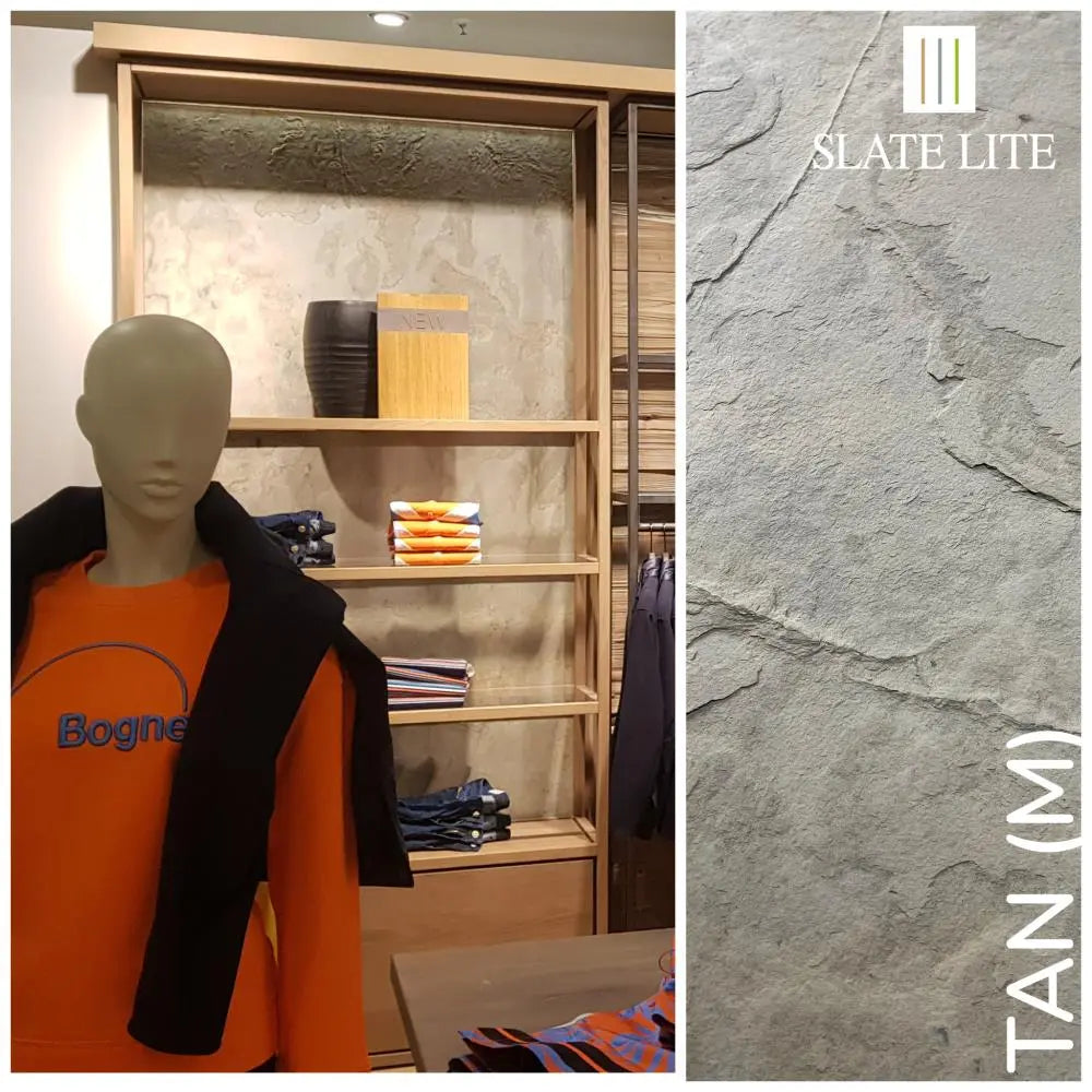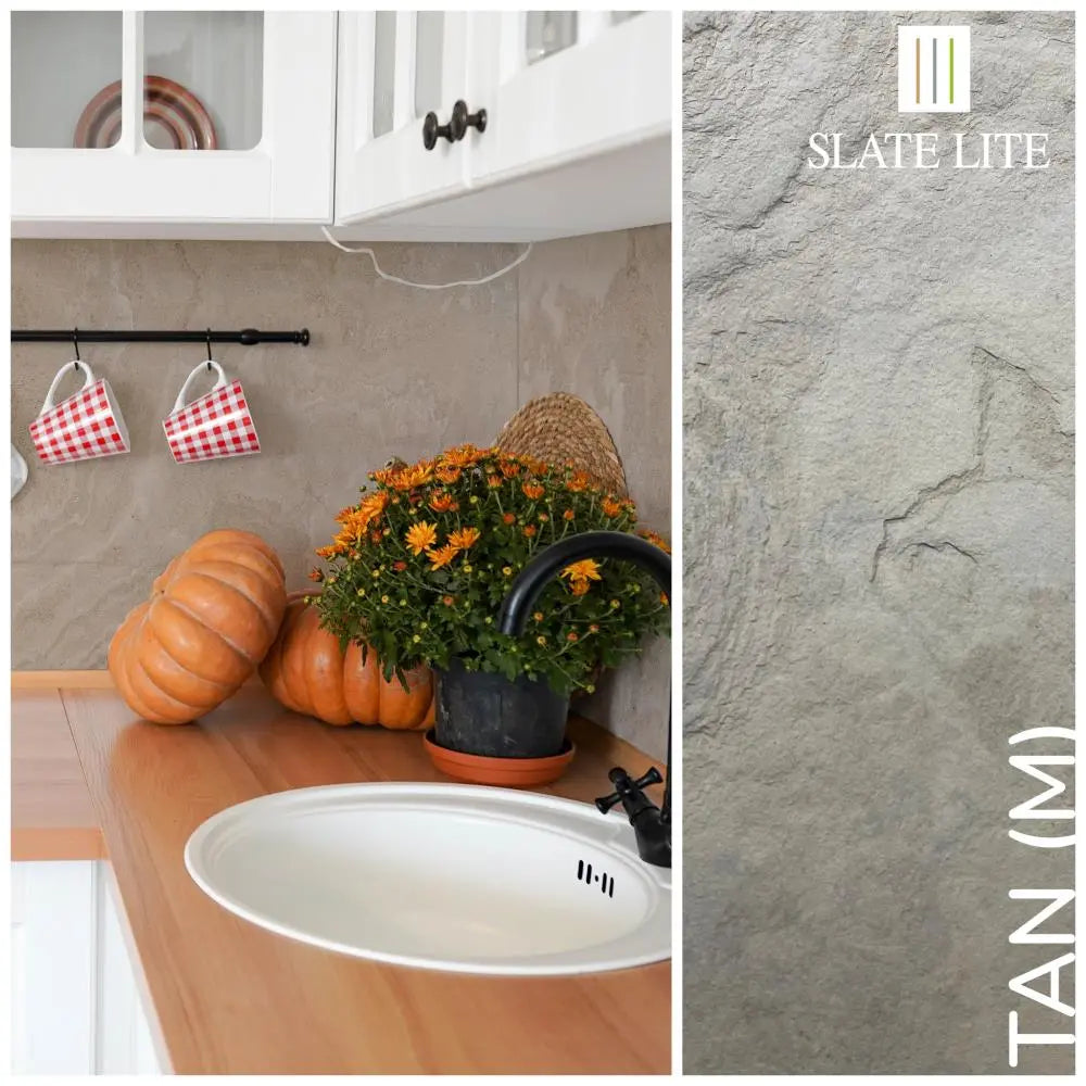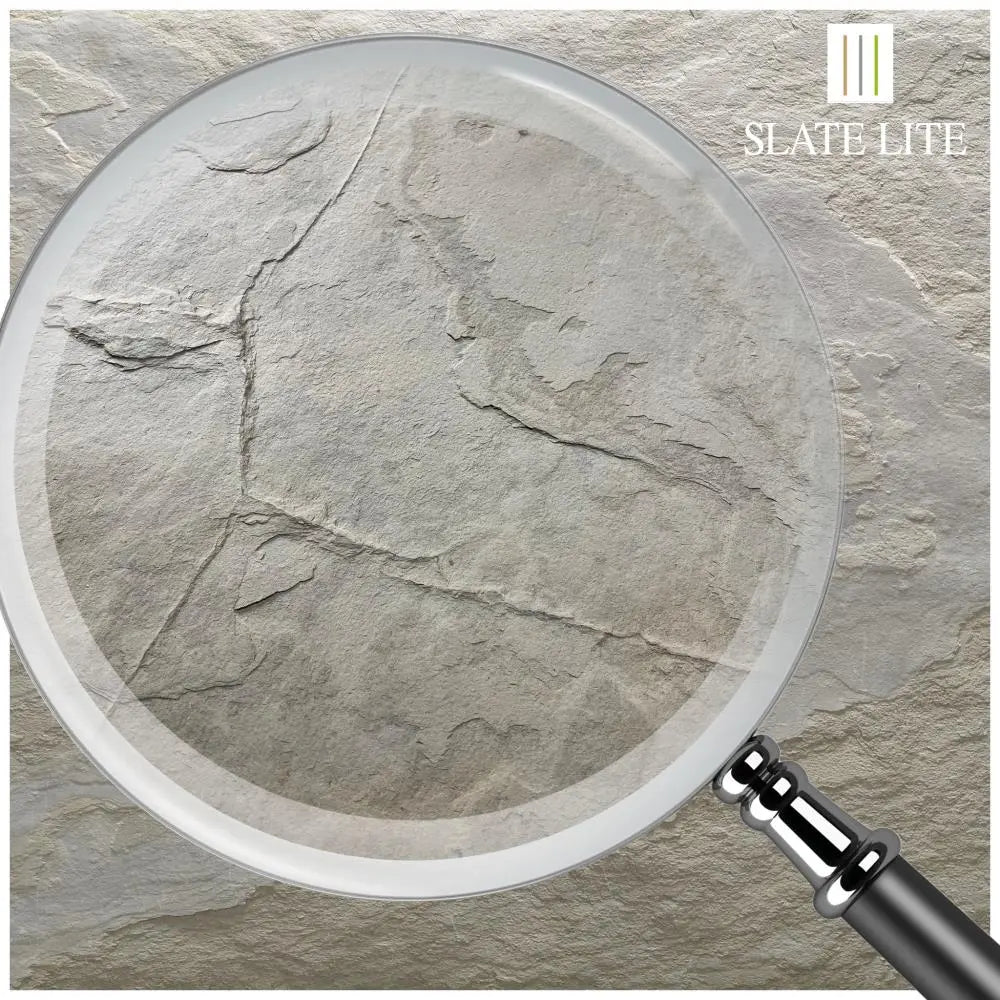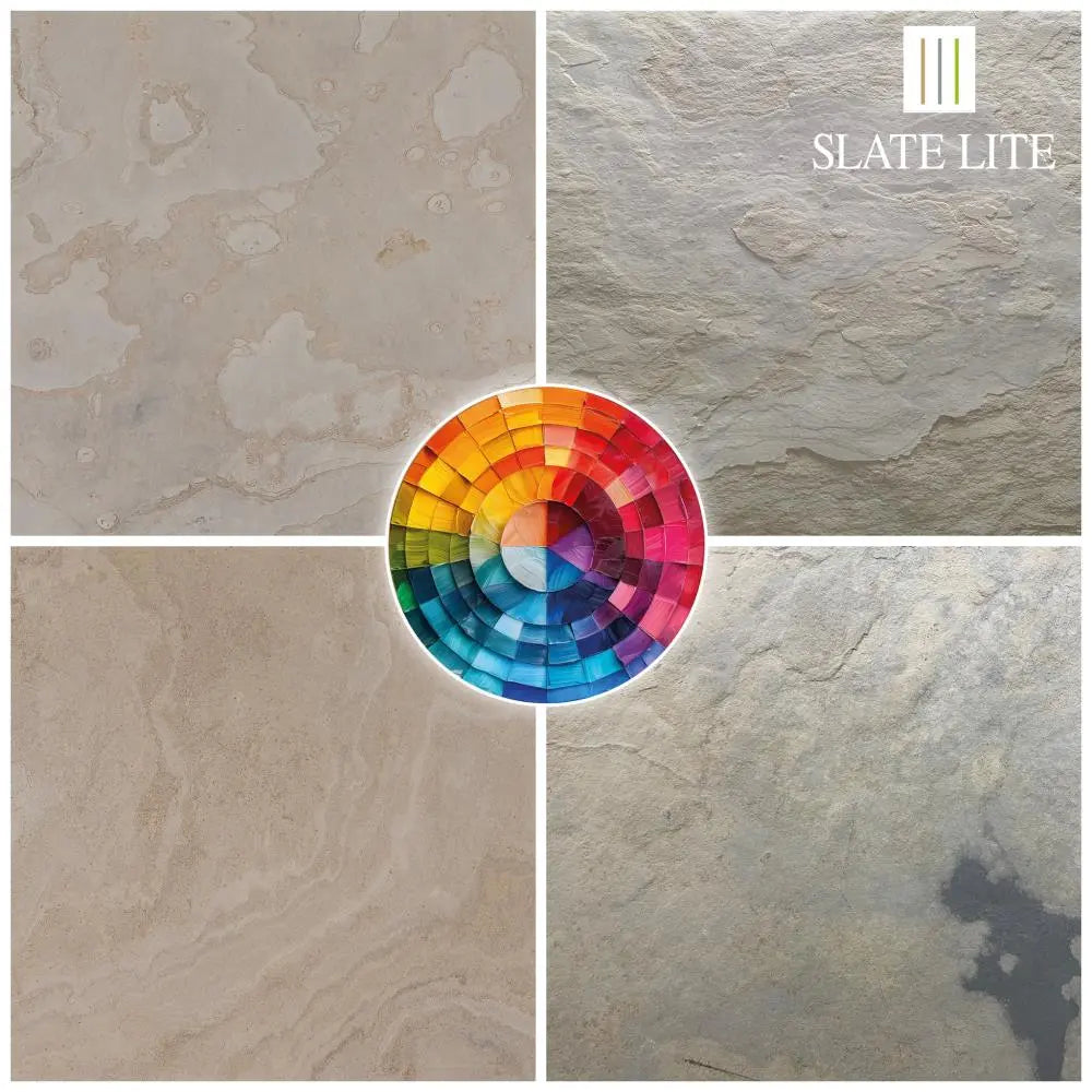 Slate-Litewird aus Schichtgestein hergestellt. Farbunterschiede in den einzelnen Platten sowie Quarzadern, die sich durch den Stein ziehen, natürliche Risse oder leichte Absplitterungen können vorkommen. Dies ist kein Mangel, sondern vielmehr einMerkmal der echten Natursteinoberflächeund macht jedes Steinblatt vonSlate-Litezu einemabsoluten Unikat!