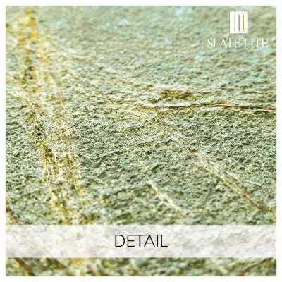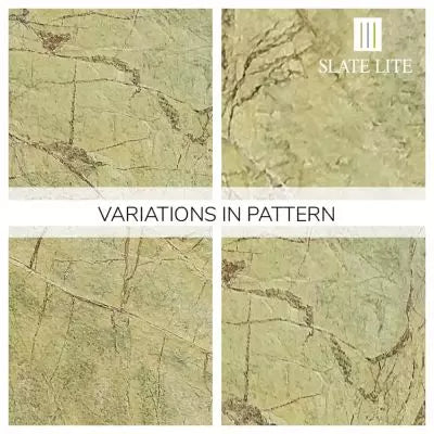 Slate-Lite wird aus Schichtgestein hergestellt. Farbunterschiede in den einzelnen Platten sowie Quarzadern, die sich durch den Stein ziehen, natürliche Risse oder leichte Absplitterungen können vorkommen. Dies ist kein Mangel, sondern vielmehr ein Merkmal der echten Natursteinoberfläche und macht jedes Steinblatt von Slate-Lite zu einem absoluten Unikat!