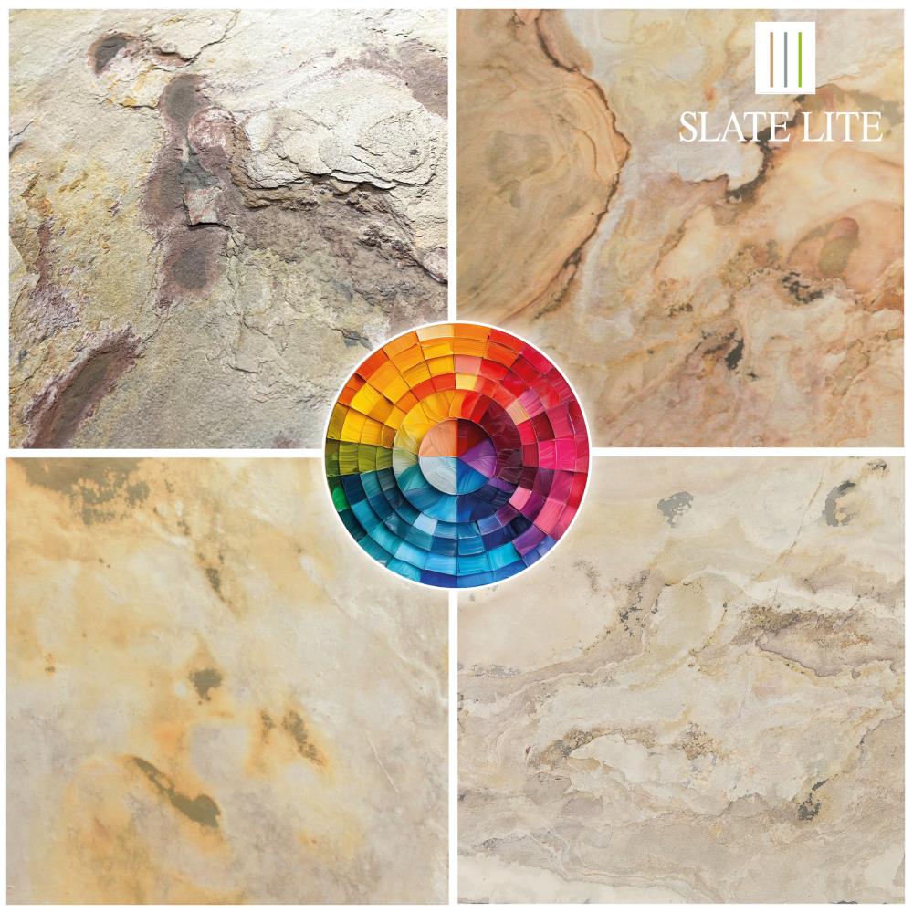 Slate-Litewird aus Schichtgestein hergestellt. Farbunterschiede in den einzelnen Platten sowie Quarzadern, die sich durch den Stein ziehen, natürliche Risse oder leichte Absplitterungen können vorkommen. Dies ist kein Mangel, sondern vielmehr einMerkmal der echten Natursteinoberflächeund macht jedes Steinblatt vonSlate-Litezu einemabsoluten Unikat!