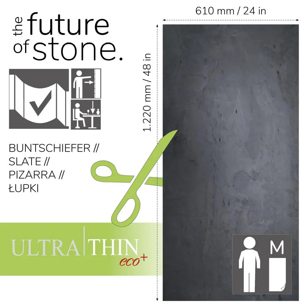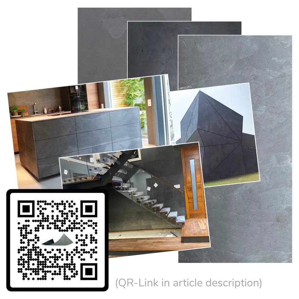 Slate-Litewird aus Schichtgestein hergestellt. Farbunterschiede in den einzelnen Platten sowie Quarzadern, die sich durch den Stein ziehen, natürliche Risse oder leichte Absplitterungen können vorkommen. Dies ist kein Mangel, sondern vielmehr einMerkmal der echten Natursteinoberflächeund macht jedes Steinblatt vonSlate-Litezu einemabsoluten Unikat!