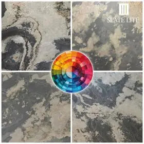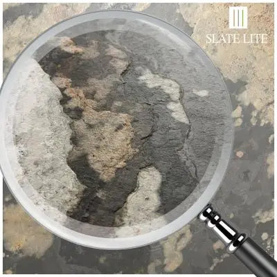Slate-Litewird aus Schichtgestein hergestellt. Farbunterschiede in den einzelnen Platten sowie Quarzadern, die sich durch den Stein ziehen, natürliche Risse oder leichte Absplitterungen können vorkommen. Dies ist kein Mangel, sondern vielmehr einMerkmal der echten Natursteinoberflächeund macht jedes Steinblatt vonSlate-Litezu einemabsoluten Unikat!